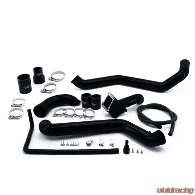 The two-piece design from the factory has crimped on boots that have a tendency to fail under heat and pressure, it's only a matter of time before it leaves you on the side of the road. The factory cold side also has its limitations and is made of plastic with an unreliable clamping system. This kit replaces all the failure-prone piping and will come with our race-proven 5 layer silicone boots to give you years of worry-free driving.