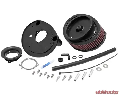 The K&N RK-3910-1 air intake system is engineered specifically for Twin Cam Harley-Davidson engines, offering an effective upgrade for riders looking to enhance performance without compromising filtration. This assembly features K&N's renowned High-Flow Air Filter, which is complemented by a powder-coated billet aluminum back plate that integrates a dyno-tuned velocity stack, optimizing airflow to the engine.