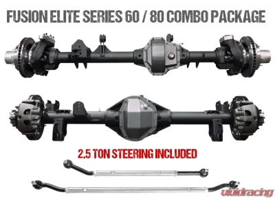 Fusion Elite Kingpin 60 Front Axle and Fusion Elite Full Float 80 Rear Axle Package. Whether you're a weekend warrior or off-road racer, these axles provide the performance you need to tackle even the most challenging obstacles. This package is ideal for those running 43+ inch tires and/or big power.