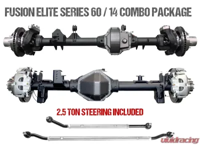 Fusion Elite Kingpin 60 and Fusion Elite Big Tube 14 Bolt Axle Package. Whether you're a weekend warrior or off-road racer, these axles provide the performance you need to tackle even the most challenging obstacles. The 14 bolt is ideal for the customer whose application needs more strength than a rear D60, but does not need a D80, or who prioritizes ground clearance.