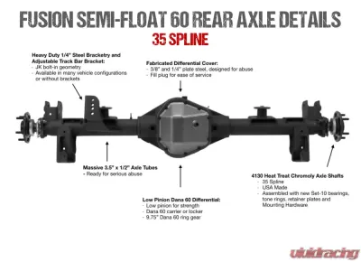 You asked, and we delivered again! The Fusion 60/44 Hybrid broke the mold, bringing superior strength and durability compared to anything in its class. However, we can't have a class leading front axle without having a rear axle to match. Welcome the Fusion Semi-Float 60 rear axle! Just like the Hybrid, it features the strongest semi-float housing in its class.