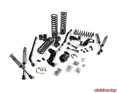 Now, let???s talk shocks. You get to choose from a few options tailored to fit your needs: JSPEC gas shocks, FOX Adventure Series, FOX 2.0 Performance Series, or even the FOX 2.5 Elite Series. Each of these is specifically valved for this suspension, ensuring you get the best performance no matter where you???re driving. Plus, the adjustable track bar and quicker-disconnects let you fine-tune your setup for increased off-road articulation, which is a game-changer when you???re tackling tougher trails.