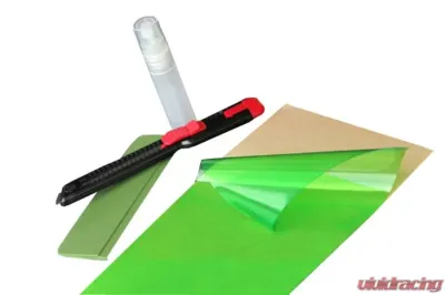 Use this individual sheet of 9" x 32" uncut/bulk Green film for a custom application to protect any surface. Sized perfectly for larger lights. These green protective film covers are made in the USA, adhesive-backed, impact-resistant, and 12 mils thick to ensure that your lights are protected for many years to come. This green color projects a bright green light from your the lights. The adhesive on the Lamin-x films are designed to be extremely forgiving. You can apply numerous times during initial application to get the installation right. These kits include installation instructions and tools, so you apply and custom trim to fit on your application.