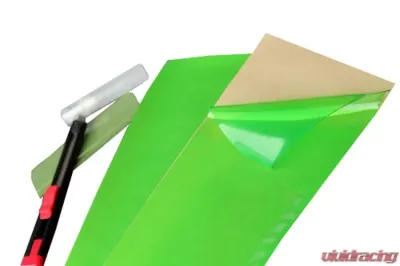 Two sheets of 9" x 32" uncut/bulk Green film for a custom application to protect any surface. Sized perfectly for larger lights. These green protective film covers are made in the USA, adhesive-backed, impact-resistant, and 12 mils thick to ensure that your lights are protected for many years to come. This green color projects a bright green light from your the lights. The adhesive on the Lamin-x films are designed to be extremely forgiving. You can apply numerous times during initial application to get the installation right. These kits include installation instructions and tools, so you apply and custom trim to fit on your application.