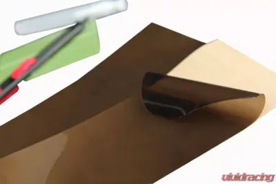 Two extra large sheets of 12" x 40" uncut/bulk Smoked film for a custom application to protect any surface. These Smoked protective film covers is The Lamin-x medium-dark color to smoke-out rear lights. If you are searching for how to smoke-out my tail lights, then this high-quality overlay product is the perfect solution. The smoked film pigment is perfect for overlaying tail light or side marker lenses while still allowing for great rearward lighting visibility. Lamin-x products are 100% made in the USA from high quality, adhesive-backed protective film that applies like an overlay directly onto the light. The films special adhesive allows for very forgiving installation. You can apply numerous times upon initial application to get it just right, and it can be easily removed in the future. This kit includes installation instructions and tools, so you apply and custom trim to fit on your application.