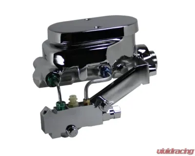New Chrome Flat Top 1" bore power brake master cylinder and adjustable proportioning valve. The Chevy Corvette booster master cylinder is perfect for most front disc / rear drum brake applications.