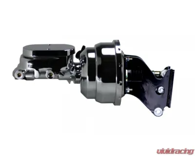 New chrome plated 8 inch dual diaphragm brake booster kit. This 8" power booster is hand polished before a chrome finish is applied for a top quality look. The black powder coated mount and pushrod assembly is a direct fit to your factory firewall for that fresh factory look. Also Included in this kit is a new 1-1/8" bore chrome flat top master cylinder perfect for most front disc /rear drum or 4 wheel disc brake applications.
