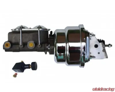 New 7" Dual Diaphragm chrome plated power brake booster, master cylinder & Adjustable Proportioning Valve combo. This 7" power booster is hand polished before a chrome finish is applied for a top quality finish. The top quality power brake booster is designed mount directly to your factory firewall. Also included in this kits is a new 1" bore Cast Iron Master Cylinder with Chrome Lid and Adjustable Proportioning Valve combo.