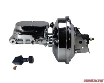New 9" Single Diaphragm chrome-plated power brake booster, master cylinder. This 9" power booster is hand polished before a chrome finish is applied for a fine finish. The top-quality power brake booster is designed to mount directly to your factory firewall. Also included in this kit is a new chrome 1" bore flat top master cylinder and an adjustable proportioning valve for disc/disc or disc/drum cars.