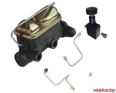 Upgrade your car to a 1 in. dual bore master cylinder with our quick install kit. This kit allows you to upgrade your factory disc brake single bowl manual brake car to dual bowl manual brakes in no time. In this kit you receive the brake lines necessary to route from the new master cylinder to your factory 3 port distribution block. Additionally we include an adjustable valve which will be installed to your rear brake line with the hard line supplied. This adjustable valve allows you to fine tune the amount of pressure your rear brakes receive in order to prevent rear wheel lockup. A great kit with a factory look and easy installation!