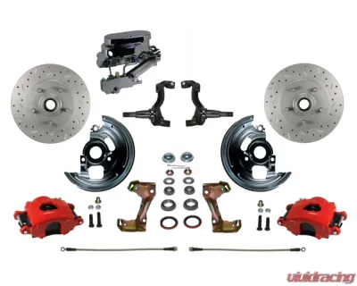 Leed Brakes Manual Front Disc Brake Kit Drilled & Slotted Rotors w/ Red Powder Coated Caliper Disc Drum Pontiac LeMans 1964-1972