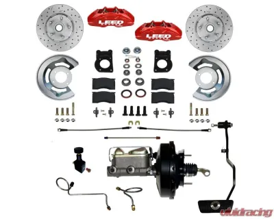 Add the safety, reliability and performance of disc brakes to your 1967-1969 Ford Mustang with this drum to power disc brake conversion kit from LEED Brakes. In this Mustang front disc brake conversion kit you receive everything you need to mount our Aluminum MaxGrip Lite 4 Piston disc brakes to the original drum brake spindles currently on your vehicle. This kit includes our MaxGrip XDS Cross Drilled & Slotted Rotors as well as Braided Hoses. This kit is an easy installation mounting to all factory mounting locations. All components used in these kits are new high quality, precision machined products. A great kit with a factory look and easy installation! Note: Fits 67-69 V8 drum brake spindles. Also fits 67-69 6cyl spindles but converts the vehicle to 5 lug. Kit will only fit vehicles with automatic transmission.