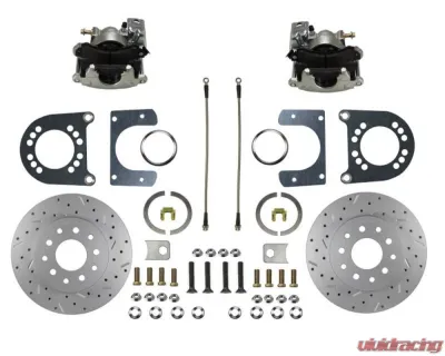 Add the safety, reliability and performance of rear disc brakes to your vehicle with our drum to disc brake conversion. In this Ford rear disc brake conversion kit you receive everything you need to mount single piston disc brakes to your Ford 8" & 9" Small Bearing Rear Axle. All components used in these kits are new high quality, precision machined products with a zinc plated finish to reduce corrosion and extend the life of your brake system. The heavy duty parking brake caliper will allow you to use your stock parking brake cables to actuate your parking brake.