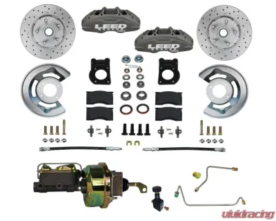 With our MaxGrip Lite 4 Piston drum to power disc brake conversion kit, you receive everything needed to mount Aluminum 4 piston disc brakes to the original drum brake spindles currently on your vehicle. This 64-66 Mustang disc brake conversion kit is an easy installation with step by step instructions. All components used in these front disc brake kits are new high quality, precision machined products. This kit also includes our MaxGrip XDS Cross Drilled & Slotted Rotors as well as Braided Hoses. A great front disc brake kit with a factory look and easy installation!