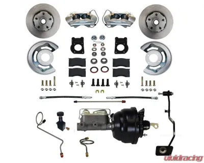 Add the safety, reliability and performance of disc brakes to your vehicle with our drum to power disc brake conversion. In this kit you receive everything you need to mount factory style 4 piston disc brakes to the original drum brake spindles currently on your vehicle. This kit is an easy installation mounting to all factory mounting locations. All components used in these kits are new high quality, precision machined products. A great kit with a factory look and easy installation! Note: Fits 67-69 V8 drum brake spindles. Also fits 67-69 6cyl spindles but converts the vehicle to 5 lug. Kit will only fit vehicles with manual transmission.