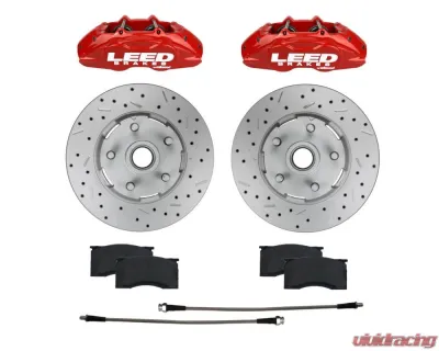 Leed Brakes 4 Piston Red Maxgrip Lite Aluminum Calipers & Rotors Ford Mustang 1964-1967