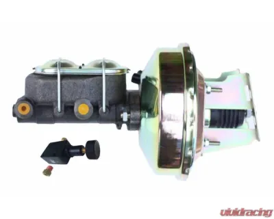 New 9" zinc plated power brake booster & master cylinder combo. This 9" power booster is hand polished before a yellow zinc finish is applied for a top quality finish. The top quality power brake booster is designed mount directly to your factory firewall. Also included in this Chevrolet C10 9-inch power booster kit is a new 1-1/8" bore master cylinder and adjustable proportioning valve equipped to work with front disc / rear drum or 4 wheel disc brake applications.