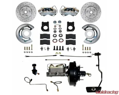 Add the safety, reliability and performance of disc brakes to your vehicle with our drum to power disc brake conversion. In this Mustang front disc brake conversion kit you receive everything you need to mount factory style 4 piston disc brakes to the original drum brake spindles currently on your vehicle. As an upgrade to our standard kit, this kit includes our MaxGrip XDS Cross Drilled & Slotted Rotors as well as Braided Hoses.This kit is an easy installation mounting to all factory mounting locations. All components used in these kits are new high quality, precision machined products. A great kit with a factory look and easy installation! Note: Fits 67-69 V8 drum brake spindles. Also fits 67-69 6cyl spindles but converts the vehicle to 5 lug. Kit will only fit vehicles with automatic transmission.