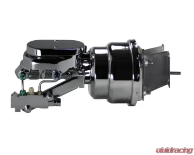 Compact-10 Series 7" Dual Diaphragm chrome plated power brake booster. This 7" GM truck brake booster is hand polished before a chrome finish is applied for a top quality finish. The 1-1/8in Bore master cylinder and proportioning valve is ideal for most 4 Wheel Disc brake applications. The Compact-10 mounting bracket and push rod assembly is a direct fit to your factory firewall. The Compact-10 series boosters are designed to mount closer to the firewall at a more natural angle than a factory style booster. This type of mount gives you the look & brake performance you want out of your truck.
