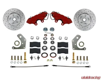 Leed Brakes Spindle Kit w/ Drilled Rotors & Red Powder Coated Calipers Plymouth Savoy 1962-1964
