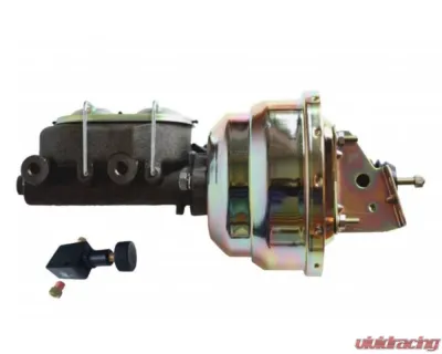 New 8" Dual Diaphragm zinc plated power brake booster, master cylinder & Adjustable Proportioning Valve. This 8" power booster is hand polished before a yellow zinc finish is applied for a top quality finish. The top quality power brake booster is designed mount directly to your factory firewall. Also included in this power brake booster kit is a new 1-1/8" bore master cylinder and Adjustable Proportioning Valve equipped to work with front disc rear drum or 4 wheel disc brake applications