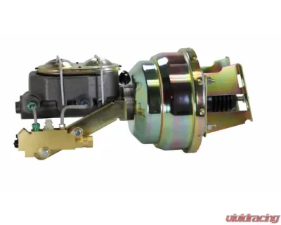 New 8" Dual Diaphragm zinc plated power brake booster, master cylinder & disc/drum proportioning valve combo. This 8" power booster is hand polished before a yellow zinc finish is applied for a top quality finish. The top quality GM power brake booster kit is designed mount directly to your factory firewall. Also included in this kits is a new 1-1/8" bore master cylinder and proportioning valve equipped to work with 4 Wheel Disc Brake applications.