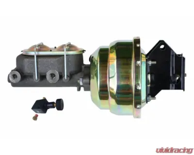 New 8" Dual Diaphragm zinc plated power brake booster kit. This 8" power booster is hand polished before a yellow zinc finish is applied for a top quality finish. The booster mounting brackets are a direct fit to your factory firewall. Also Included in this kit is a new 1" bore master cylinder and adjustable valve perfect for most front disc /rear drum, 4 wheel disc or 4 wheel drum brake applications.*Note - This Kit Converts Manual Brake Cars to Power Brakes. If your vehicle has factory power brakes you must use one of our Power to Power Upgrade Kits