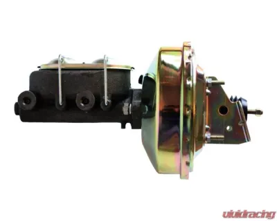 New 9" zinc plated power brake booster, master cylinder. This 9" power booster is hand polished before a yellow zinc finish is applied for a top quality finish. The top quality power brake booster is designed mount directly to your factory firewall. Also included in this GM brake kit is a new 1-1/8" bore master cylinder equipped to work with disc/drum & disc/disc brake applications.