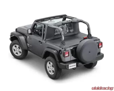Get ready for your next summer adventure with the MasterTop MasterTwill Fabric Wind Stopper/Tonneau Cover Combo Kit, specifically designed for the Jeep Wrangler JL 2-Door models from 2018 to 2021. This accessory is perfect for those who love the open-air feel while keeping their gear protected from unexpected rain showers.