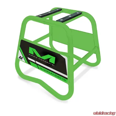 Looking for a reliable and stylish way to support your bike? The Matrix Concepts A1 Aluminum Stand in a vibrant green color is just what you need! This stand combines durability with a sleek design, making it a perfect addition to your garage or pit area.