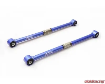 Crafted from a robust steel alloy, these control arms are engineered to withstand the rigors of both street and track use. The components feature a blue-metallic powder-coated finish, ensuring durability and resistance to corrosion. The turn-buckle style adjustment mechanism allows for precise camber and toe adjustments, providing a direct connection to the road without sacrificing ride comfort.