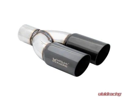 The Megan Racing MR-UT-TBC-DS is a universal exhaust tip designed for automotive enthusiasts seeking to enhance their vehicle's aesthetics and exhaust sound. Crafted from high-quality stainless steel, this exhaust tip features a dual outlet configuration with a striking black chrome finish, providing both durability and a sleek appearance.