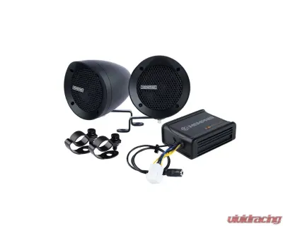 Memphis handle bar mount bullet style speakers pack impressive performance into a small unit. These kits are leagues above anything in their class in terms of performance. The speakers were designed specifically for motorcycle audio and for small powersports audio applications. These black bullet speakers are powered by a small but mightily 100 Watt 2-channel and produces enough sound to easily be heard over road and engine noise.