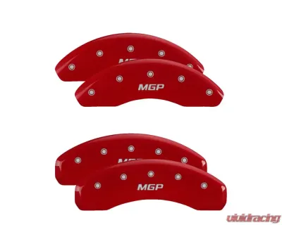 Each set consists of four caliper covers, specifically engineered for a precise fit on the Toyota Mirai models from 2016 to 2018. The covers feature a vibrant red powder coat finish, complemented by engraved silver MGP branding on both the front and rear, ensuring a visually striking upgrade to your brake system.