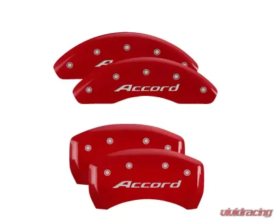 Enhance the look of your Honda Accord with the MGP Caliper Covers, specifically designed for models from 2018 to 2022. This set of four caliper covers comes in a striking red powder coat finish, complemented by engraved silver characters that proudly display "Accord" on both the front and rear. Customers have noted how these covers add a touch of style to their vehicles, making them stand out on the road.