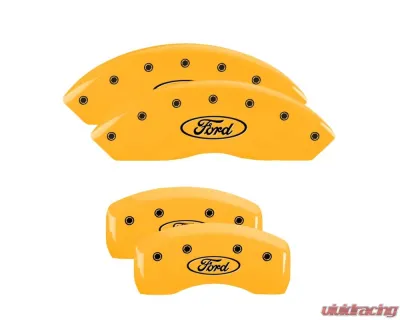 Manufactured in the USA, the MGP Caliper Covers are crafted from T-6061 aerospace grade aluminum, ensuring both strength and durability. The TIG welded construction adds to their resilience, while the vibrant yellow powder-coated finish with a black Ford oval logo makes a bold statement. Installation is straightforward, taking about an hour without the need for any adhesives or modifications to your calipers.