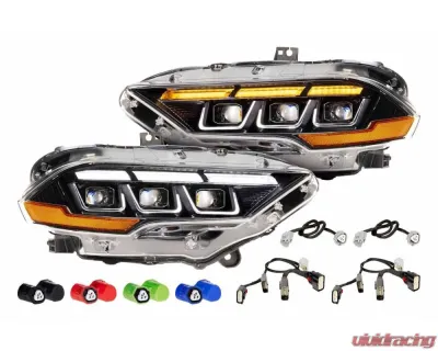 DRL Optics: The turn signals and daytime running lights illuminate modern reflector-based optics with special optical surface textures that enhance intensity at a distance, no matter day or night. These easily out-shine the low-tech daytime running lights found in many other aftermarket headlights for the Mustang, including their previous gen units.