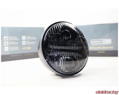 Introducing the Sealed6 LED headlights--a revolutionary solution for your vehicle's lighting needs. These 5.75" round sealed beam LEDs redefine the market with their unmatched quality and performance. Powered by high-quality LEDs from Nichia-Japan and Philips-Lumileds, the Sealed6 emits a powerful 2400-lumen beam in low mode and an impressive 4300-lumen output in high mode, ensuring optimal visibility on the road. The advanced Kuria Optic projector lens array guarantees a properly LHD-stepped beam pattern for precision lighting. Beyond performance, the Sealed6 boasts a dual light-pipe DRL setup with both high-intensity white daytime running lights and low-intensity white parking lights. The UV-coated polycarbonate lens ensures long-lasting durability, while the heavy-duty die-cast housings double as efficient heat sinks. Compatible with various vehicle models, the Sealed6 comes standard with H4 3-pin male inputs, making installation a breeze. Say goodbye to limited options in the 5.75" round sealed beam LED market and experience the Morimoto Sealed6--a blend of innovation, quality, and functionality for your classic car or truck.