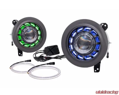 The optics are crafted to maximize intensity from all angles, ensuring you?re visible day or night. Each halo ring is packed with 3W RGB and 1W Pure White LED chips, providing a virtually endless variety of colors while also featuring a pure white mode.