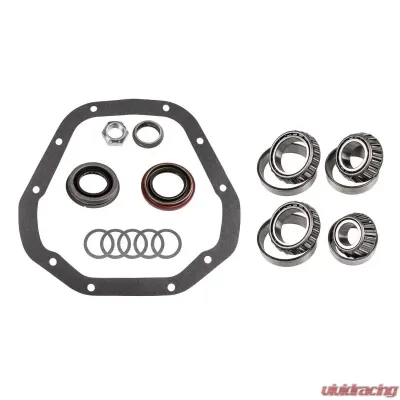 For Dana 60; Bearing Kit Includes Koyo Tapered Bearings (Carrier, Front and Rear Pinion, Pilot where applicable), Brush, Cover Gasket (or RTV), Crush Sleeve (or Preload Shim Pack), Marking Compound, Pinion Nut, Pinion Seal, and Thread Locking Compound