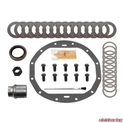 For GM 8.5" O Axle (12 Bolt); Install Kit Includes Brush, Cover Gasket (or RTV), Crush Sleeve (or Preload Shim Pack), Marking Compound, Pinion Nut, Pinion Seal, Ring Gear Bolts, Shims (Pinion, Carrier), and Thread Locking Compound