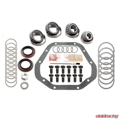 For Dana 50; Master Bearing Kit Includes Timken Tapered Bearings (Carrier, Front and Rear Pinion, Pilot where applicable), Brush, Cover Gasket (or RTV), Crush Sleeve (or Preload Shim Pack), Marking Compound, Pinion Nut, Pinion Seal, Ring Gear Bolts, Shims (Pinion, Carrier), and Thread Locking Compound