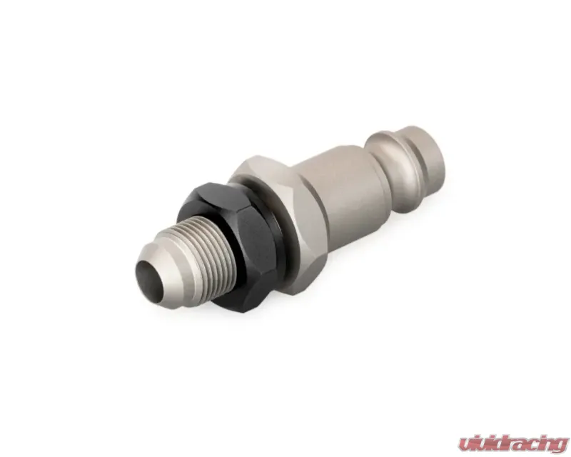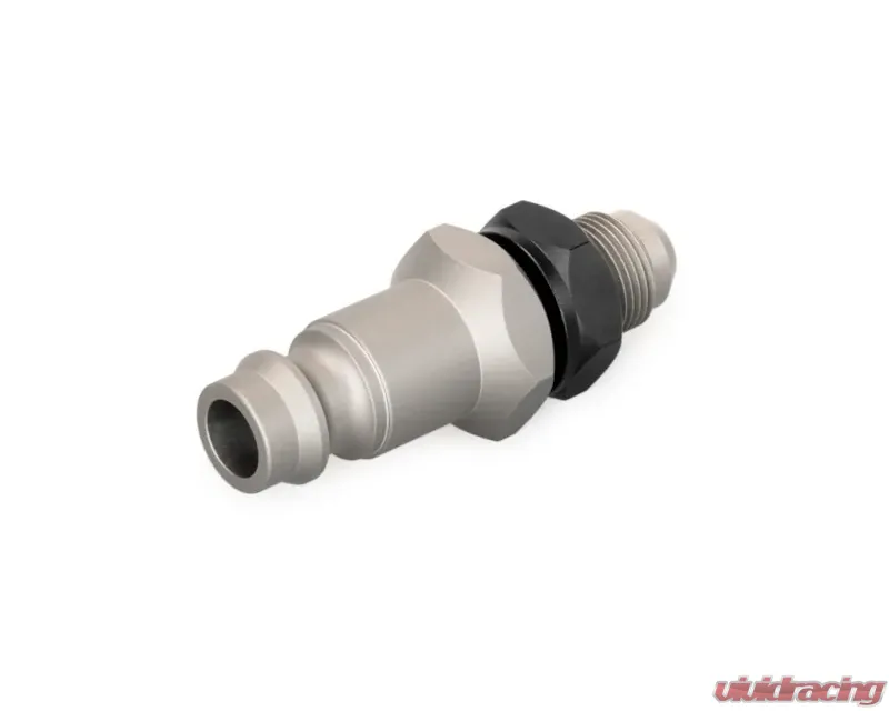 The quick-connect valve is designed without shut-off functionality. The AN-6 male thread allows for effortless connection to Nuke Performance hose or tube kits. This connector activates the lift instantly upon pressure application and disengages the lift immediately when the air jack lance is removed, releasing the pressure.