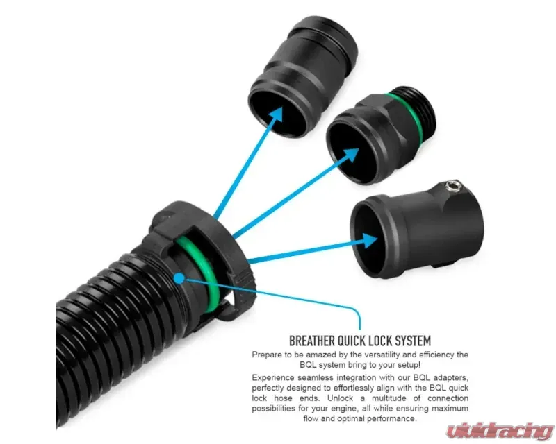The barbed female end suits a SAE barb male with a 21.5mm OD O-ring such as the one on the Alfa Romeo Giulia/Stelvio PCV valve. This adapter lets you adapt your male barb fitting to the BQL system with the BQL 22 female port. The BQL 22 Female port connects to the BQL Male hose ends, available as straight and 90-degree.
