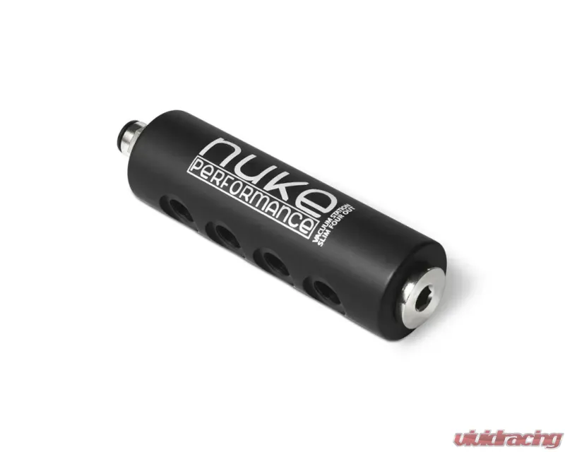 The Nuke Performance Vacuum Station Slim 4 Outlets is designed for automotive enthusiasts seeking a streamlined solution for managing vacuum lines in the engine bay. This vacuum manifold is engineered to consolidate multiple vacuum connections into a single, efficient line to the intake manifold, minimizing clutter and optimizing performance.