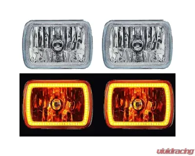 This pair Of 7X6 Inch Crystal Clear Glass / Metal Backed - Amber SMD Led Halo Headlights With White Halogen Light Bulbs. This Headlight Has A Clear Glass Lens / Metal Backing With SMD Led Angel Eye Halo Rings In The Headlight. This Set Includes (2) Headlights With (2) 55W/60W Super White Halogen Light Bulbs.