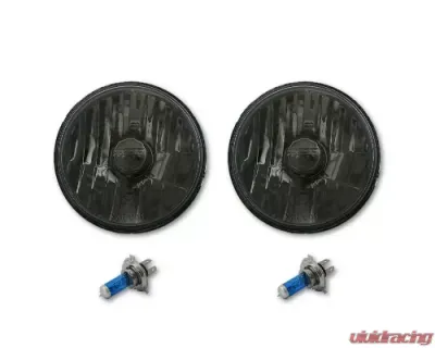 Pair - 5 3/4 Inch Halogen Crystal Smoked Glass Lens / Metal Reflector Headlights. Includes (2) Removable 60/55W Xenon Super White H4 Halogen Light Bulbs. Interchange: H5006 / H5001 / 4000 / 5001