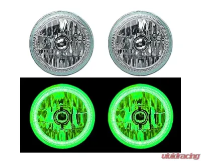 This Listing Is For a pair (2 Bulbs) Of 7 Inch 12 Volt High/Low Beam Halogen Headlights With Green Cob Plasma Led Halo Angel Eye Rings. These Halo Rings Are Extremely Bright And Can Easily Be Seen During The Day And Night Even With The Headlight On.