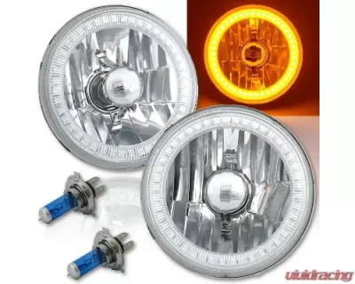 Pair 5-3/4 Inch Crystal Clear Glass Faced Halogen Headlamp Bulbs With Amber SMD Led Halo Rings. Xenon Super White Halogen 60/55W H4 Bulbs Are Also Included.