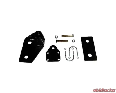 The welded bracket with the ears mounts between the factory swaybar mount and the frame with the moving end clamped to the draglink with our steering stabilizer bracket kit